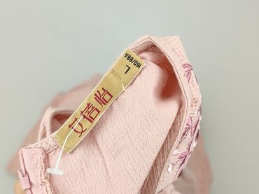 Różowa sukienka dziewczęca z długim rękawem - Góra i rękawy z koronką w kwiatowy wzór (róże), na podszewce - Dół gładki, rozkloszowany z marszczeniami od talii - Okrągły dekolt - Miękki, elastyczny...