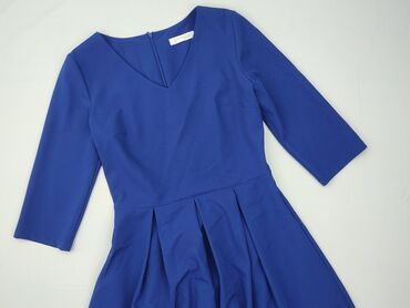 Sukienka damska efect – granatowy melanż - Fason: prosty, lekko dopasowany, długość przed kolano - Rękaw: 3/4 - Dekolt: półokrągły - Kieszenie: dwie naszywane, zaokrąglone z przodu - Materiał: 90%...
