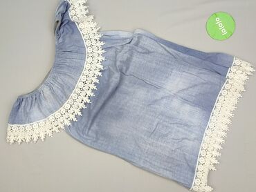 Sukienka jeansowa/denim, damska - Kolor: jasny niebieski (denim) - Fason: luźny, lekko trapezowy - Dekolt: okrągły - Rękawy: odkryte ramiona (cold shoulder) z szerokimi, falbanistymi mankietami - ...Stan:
