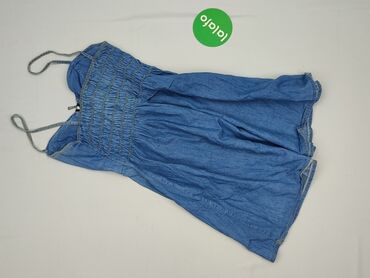 Jeansowa sukienka na ramiączkach dla kobiet - Fason: mini, dopasowany, z przodu imitacja zapięcia na napy i patki - Regulowane ramiączka z metalowymi klamerkami - Liczne kieszonki i ozdobne patki ...