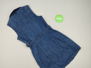 Sukienka jeansowa bez rękawów – damska - Rozmiar: S (metka „SIZE S”) - Materiał: 98% bawełna, 2% spandex – elastyczna, miękka dzianina denim - Krój: dopasowany, mini - Kolor i wykończenie: klasycz...