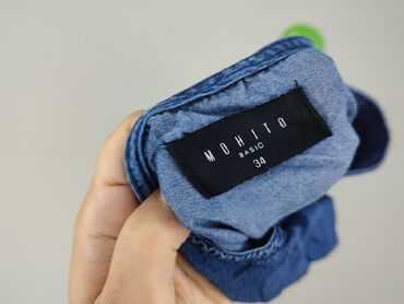 Sukienka jeansowa MOHITO – Denim Collection - Rozmiar: 36 (z metki) - Kolor: klasyczny niebieski denim - Krój: dopasowany u góry, lekko rozszerzany ku dołowi - Rękaw: krótki - Kołnierz: stójka - Z...