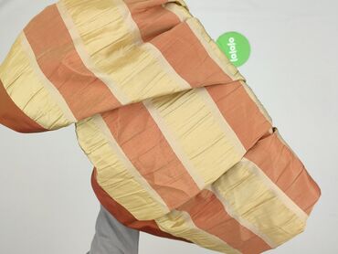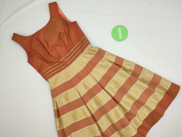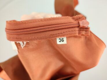 - Wzór/kolor: pasy w odcieniach rdzawego pomarańczu i złamanej żółci; w talii ozdobne, poziome przeszycia/paseczki