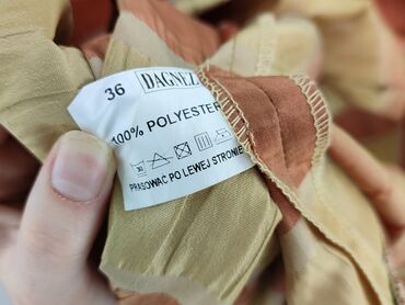 - Tkanina: 100% poliester (metka producenta); strukturalne pasy na spódnicy dodające objętości