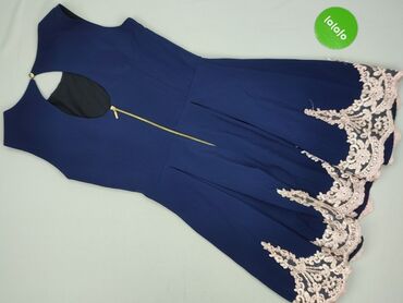 Sukienka koktajlowa Duet A&M - Kolor: granatowy - Rozmiar z metki: 40 - Materiał (z metki): 60% bawełna, 35% poliester, 5% elastan - Fason: dopasowana góra bez rękawów, okrągły dekolt; dół z kilku...