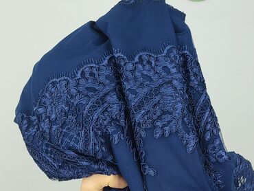- Wykończenie: bogate koronki i hafty 3D w tonacji granatu na całej sukience; falowany, ażurowy brzeg dołu