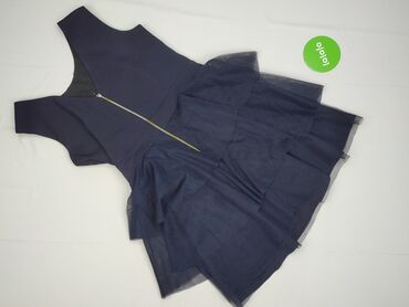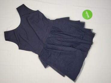 Sukienka koktajlowa Duet ASM, rozmiar 38 - Kolor: granat - Krój: rozkloszowany dół z kontrafałdami, talia podkreślona - Góra: bez rękawów, okrągły dekolt z ozdobnym wycięciem przy karku - Tył: zam...