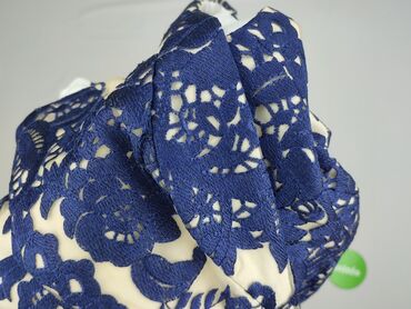 Sukienka koktajlowa z haftem kwiatowym - Kolor: granatowy z białymi/srebrzystymi aplikacjami - Krój: bez rękawów, dopasowana góra, rozkloszowany dół z zakładkami - Dekolt: w kształcie litery V z p...