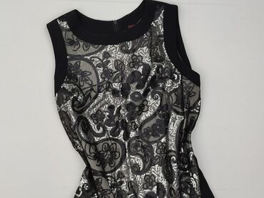 Sukienka damska koktajlowa, czarna, ołówkowa - Krój: dopasowany, długość przed kolano - Dekolt: zabudowany, bez rękawów - Materiał: elastyczna dzianina łączona z koronką - Wstawki: koronkowe panel...