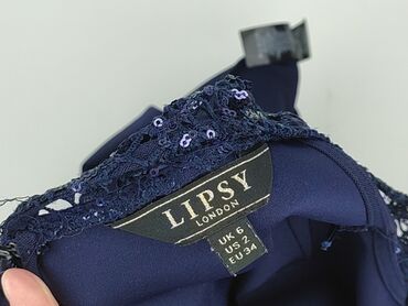 Sukienka koktajlowa na ramiączkach – LIPSY - Fason: ołówkowy, dopasowany, długość przed kolano - Kolor: granatowy z czarnymi wstawkami modelującymi sylwetkę - Dekolt: serce, cienkie regulowane ram...