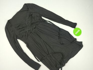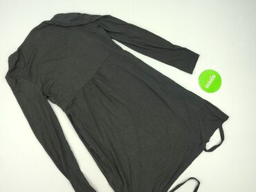 Czarna tunika damska z długim rękawem - Fason: kopertowy dekolt w kształcie V, odcięcie i marszczenie w talii, rozkloszowany dół - Rękawy: długie - Długość: tunikowa (sięga poniżej bioder) - Mater...