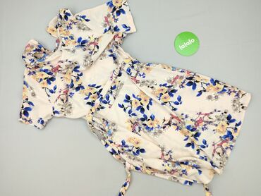 Sukienka kopertowa w kwiaty - Krój: kopertowy, wiązana w pasie długim troczkiem, który pozwala dopasować obwód talii - Dekolt: w kształcie litery V - Rękawy: krótkie - Długość: midi - Tkanina: lek...Stan: