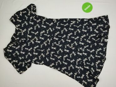 Sukienka damska NEXT - Model: krótki rękaw, długość midi za kolano, delikatnie rozkloszowany dół - Kolor: czarny z drobnym, jasnym, kwiatowym nadrukiem - Materiał: siateczka/mesh z podszewką - W...