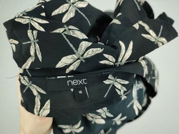 Sukienka damska Next - Rozmiar: 14 (UK) - Fason: ołówkowy, przylegający, długość przed kolano - Kolor/wzór: czarno‑biały, graficzny print z drobnymi elementami; górna część z czarnego, półprze...
