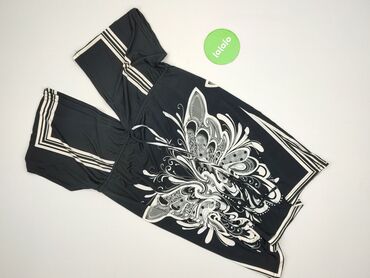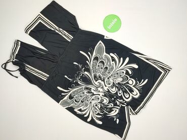 - Kolorystyka: czerń z białymi graficznymi nadrukami; na spódnicy duży, ornamentalny motyw (efekt motyla/roślinny), na krawędziach geometryczne lamówki