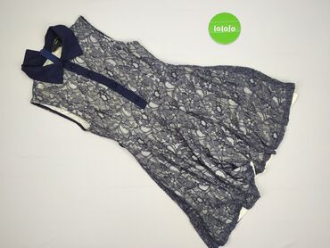 Sukienka koronkowa Next Petite - Marka: Next - Linia: Petite - Rozmiar: UK 12 / EU 40 (metka: 12P) - Kolor: granatowy/niebieski - Fason: dopasowany, mini/tuż przed kolano - Materiał: 85% bawełna, ...