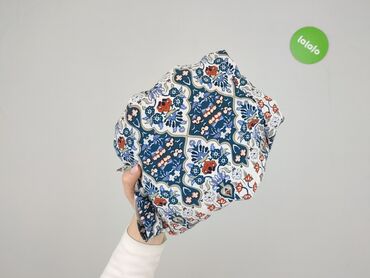 - Wzór: gęsty, kafelkowo-kwiatowy print w odcieniach granatu, bieli, błękitu i ceglanej czerwieni.