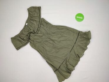 Sukienka H&M L.O.G.G. - Model: lekka, prosta sukienka z krótkim rękawem i dekoltem w serek - Wzór: drobne białe motywy kwiatowe/geometryczne na oliwkowo‑zielonym tle - Rozmiar z metki: EUR 38, UK ...