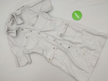 Sukienka koszulowa damska w kolorze jasnoszarym. - Fason: koszulowy, zapinany na napy z przodu - Kołnierzyk klasyczny - Rękawy do łokcia z możliwością podpięcia na patkę z guzikiem - Talia regulow...