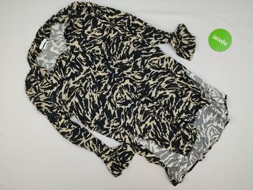 Sukienka RESERVED Eco Aware - Model: mini z długim rękawem - Wzór: beżowo‑czarny, inspirowany zwierzęcym printem (nieregularne kropki/plamki) - Dekolt: V z listwą zapinaną na guziki z przodu - Tal...