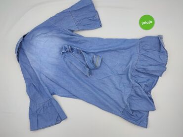 Przedmiotem ogłoszenia jest damska sukienka koszulowa w kolorze jasnoniebieskim, wykonana z materiału przypominającego jeans. Sukienka posiada krótkie rękawy i kołnierzyk, nadając jej klasyczny wyg...