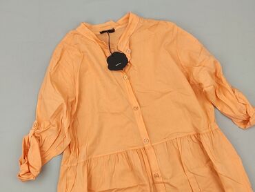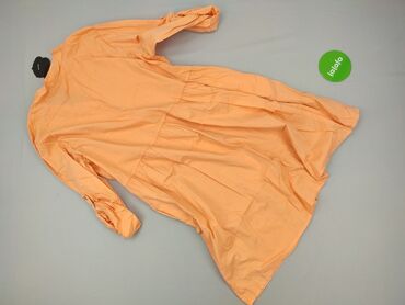 Sukienka koszulowa midi w kolorze brzoskwiniowym. - Fason: rozkloszowana, z doszywanymi falbanami na dole - Zapięcie: rząd guzików z przodu do linii talii - Kołnierzyk koszulowy - Rękawy 3/4 z del...Stan: