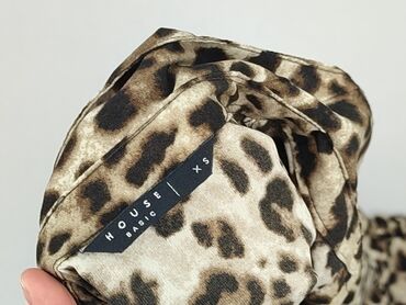 Sukienka damska marki HOUSE BRAND w rozmiarze XS, idealna dla kobiet. Charakteryzuje się wzorem w cętki, dekoltem w kształcie litery V oraz krótkimi rękawami z falbankami, co nadaje jej lekki i zwi...