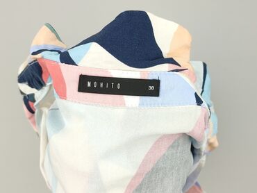 Sukienka koszulowa MOHITO - Rozmiar z metki: 32 - Materiał: 100% wiskoza (metka materiałowa na zdjęciu) - Kolor: granatowy - Wzór: drobne białe kwiaty z zielonymi akcentami - Krój: koszulowy, zapi...