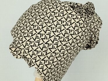 - Wzór: geometryczny all-over w odcieniach beżu i czerni, kontrastowe panele na kieszeni i u dołu