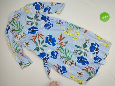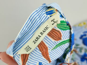 Sukienka koszulowa Zara Basic Collection - Wzór: czarne tło z beżowo-białymi paskami i kwiatowym nadrukiem w odcieniach żółci, zieleni i czerwieni - Krój: koszulowy, wiązanie w pasie z materiałowy...