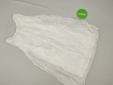 Biała, zwiewna sukienka na cienkich ramiączkach. - Fason: luźny, prosta linia, delikatnie rozszerzana ku dołowi; z przodu mała zakładka/rozcięcie pod dekoltem. - Materiał: lekkie, półprzezroczyste ...