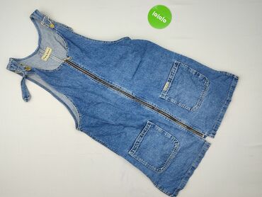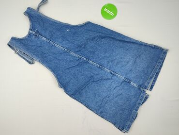 Jeansowa sukienka ogrodniczka Esmara - Materiał: klasyczny denim w kolorze średniego niebieskiego - Krój: ogrodniczka z przodem na szelkach, spódnica przed kolano z postrzępionym dołem - Talia: Me...