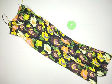 Sukienka maxi na ramiączkach, czarna w intensywny kwiatowy wzór (odcienie różu, fioletu i zieleni). - Fason: długa, lekko rozkloszowana spódnica, góra mocno marszczona/zakładkowa (smock) dopasowują...