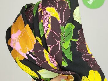 - Wzór: duże, barwne kwiaty (żółte, fioletowe, kremowe, pomarańczowe, różowe) na czarnym tle
