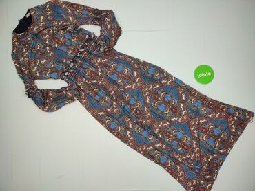 Sukienka damska marki Reserved w rozmiarze S. Charakteryzuje się wzorem paisley w odcieniach brązu, zieleni i bieli. Posiada długie rękawy oraz dekolt w kształcie litery V. Wykonana z lekkiego, zwi...