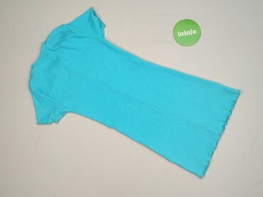 Sukienka damska bez wzorów, kolor turkusowy. - Krój prosty, długość przed kolano. - Okrągły dekolt. - Rękawy krótkie z falbankami. - Rozmiar z metki: L. - Materiał: 100% poliester (informacja na me...