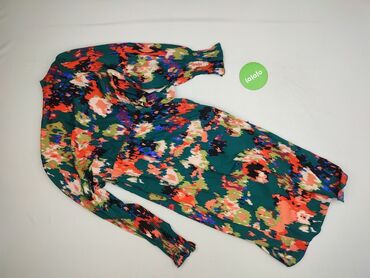 Na co dzieńSukienka maxi damska z długimi rękawami i dekoltem w kształcie litery V, idealna na wiele okazji. Materiał w barwne, abstrakcyjne wzory w odcieniach zieleni, pomarańczy, błękitu i czerni nadaje jej unikalny wygląd. Długie rękawy zakończone są gumką, co dodaje im puszystości i komfortu noszenia. Sukienka posiada kopertowy fason, który pięknie podkreśla sylwetkę, jednocześnie zapewniając swobodę ruchów. Wykonana z poliestru, jest lekka i przewiewna. Doskonała zarówno na co dzień, jak i na specjalne wyjścia, oferując styl i wygodę w jednym.Stan idealny.