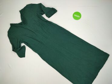 Długa sukienka damska w odcieniu zieleni, o dopasowanym kroju, z długimi rękawami i wysokim golfem. Wykonana z dzianiny o wyraźnym splocie, idealna na chłodniejsze dni. Prosty, a zarazem elegancki ...Stan: