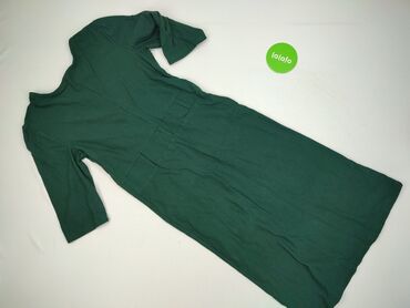 Sukienka zielona z ażurowej bawełny - Krój: luźna, odcinana w talii/na biodrach, delikatnie rozkloszowany dół - Długość: do kolan (mini/midi w zależności od wzrostu) - Rękawy: 3/4 z marszczeniem p...