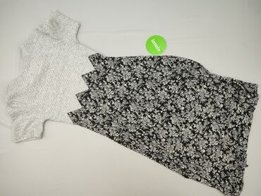 Sukienka damska z krótkim rękawem, w kwiaty i delikatne pionowe paseczki na jasnym tle. - Krój: luźny, lekko zaokrąglony dół (dłuższy tył), dekolt V z dekoracyjnym suwakiem z przodu. - Rękawy: kró...Stan: