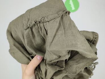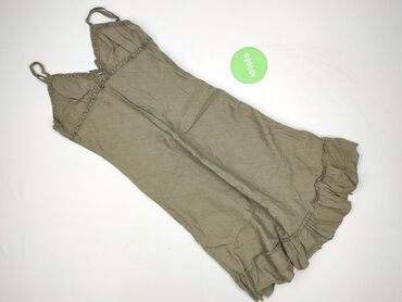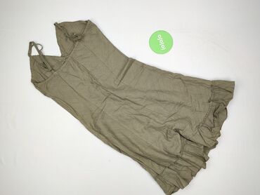 Sukienka maxi w kolorze khaki/oliwkowym - Fason: prosta, luźna, długość maxi - Dekolt: zaokrąglony - Rękawy: krótkie, podwinięte - Rozcięcie: długie rozcięcie z przodu, wzdłuż pionowego przeszycia...Stan: