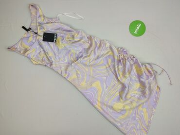 Sukienka letnia PIECES, rozmiar S - Krój: na ramiączkach, lekko rozkloszowana, z listwą guzików z przodu (widoczne małe guziki). - Wzór: drobna łąka/kwiaty w pastelowych kolorach – lila, żółty, bi...