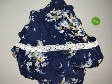 Sukienka na ramiączkach, granatowa, w kwiatowy nadruk. - Fason: lekko rozszerzany, z falbaną na wysokości biustu - Ramiączka: cienkie, regulowane - Dekolt: w kształcie litery V z przodu i z tyłu -...