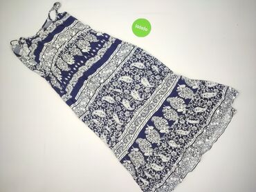 Sukienka maxi F&F - Typ: długa sukienka letnia/maxi - Krój: bez ramiączek (hiszpanka/strapless) z elastyczną, marszczoną górą; w pasie wiązany pasek z tego samego materiału - Wzór: granatowy w bia...