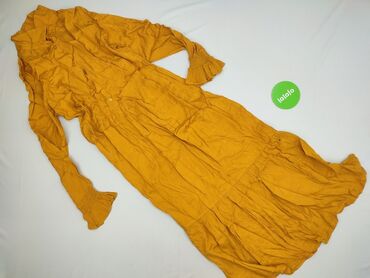 Sukienka damska midi w kolorze musztardowym. - Fason: odcinana w talii z szerokim, elastycznym pasem (gumka) oraz lekkim, rozkloszowanym dołem - Rękawy: długie z marszczonymi mankietami na gumce -...