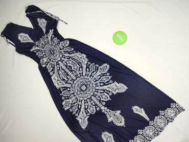 Sukienka maxi na ramiączkach, rozmiar XL. Granatowa baza z dużym, akwarelowym kwiatowym nadrukiem w odcieniach różu, błękitu i turkusu. Dekolt kopertowy w kształcie V, cienkie regulowane ramiączka,...