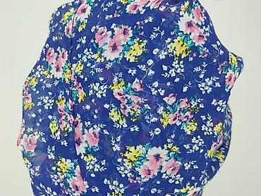 - Wzór i kolor: granatowa w drobny, wielobarwny kwiatowy nadruk (róże, żółte akcenty, białe listki)