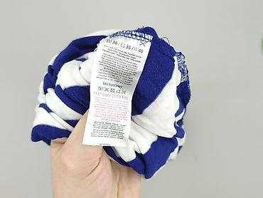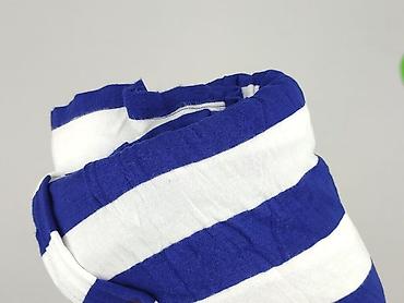 - Wzór i kolor: szerokie poziome pasy w kolorze kobaltowym i białym – styl marynistyczny.