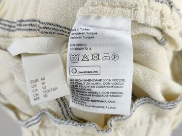 Spodnie damskie H&M – mieszanka lnu - Krój: wysoki stan, luźna nogawka typu tapered, zakładki z przodu - Kolor: jasny krem/ecru - Rozmiar z metki: EUR 34 (US 2, CA 2, CN 160/64A) - Skład (outer): ...