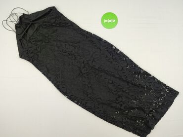 Długa sukienka bez rękawów w kolorze czarnym z koronkową, ażurową górą. - Fason: dopasowana góra, długość maxi, bez rękawów, okrągły dekolt - Materiał: elastyczna koronka na wierzchu (czarny ażur ...Stan: